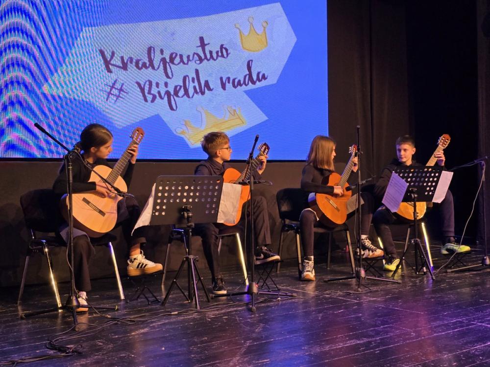 Muzički dio programa upotpunili su učenici Škole za osnovno muzičko obrazovanje iz Bijelog Polja – Kvartet gitara u sastavu: Adis Sijarić, Magdalena Bulatović, Omar Mekić i Ina Omerhodžić, iz klase Jasmina Ćorovića i Milene Vračarić Zaimović, koji su izveli „Valcer“ Enrikea Granadosa. Nastupila je i Zara Mušović (solo pjevanje) sa odlomkom iz mjuzikla „Uspavana ljepotica“, u klasi Anje Radović, uz klavirsku pratnju Milene Đurović.