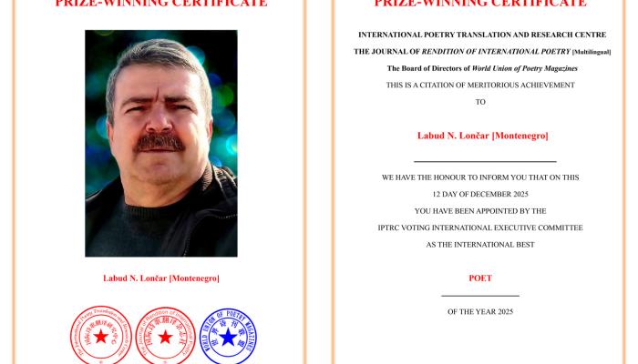 Bar i Crna Gora na svjetskoj mapi poezije: Lončar među laureatima za 2025.
