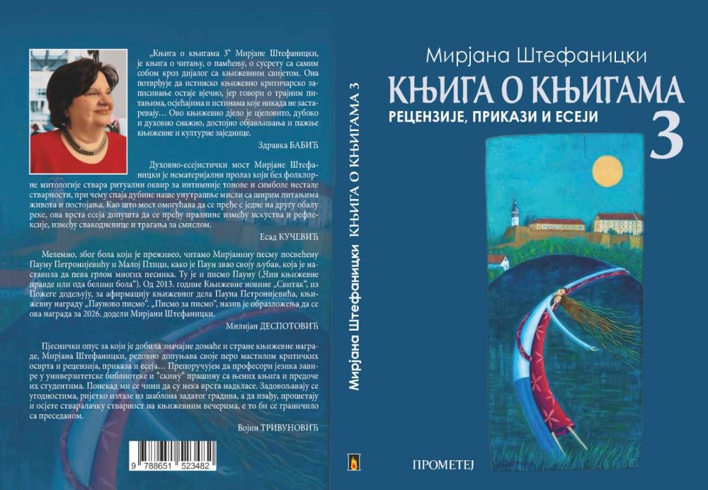 3) Mirjana Štefanicki: „Knjiga o knjigama 3 – recenzije prikazi eseji“, Prometej, Novi Sad, 2026.