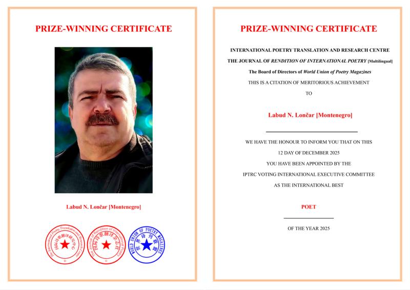 Dana 12. decembra 2025. godine, taj most je zasijao izuzetnim sjajem kada su objavljeni dobitnici Međunarodnih nagrada za najbolje pjesnike i prevodioce. Svečanost, koju su organizovali Međunarodni centar za istraživanje i prevođenje poezije (IPTRC), Journal of Rendition of International Poetry i Upravni odbor Svjetske unije časopisa za poeziju, predstavlja jedno od najuglednijih priznanja za književno stvaralaštvo među jezicima i kontinentima.